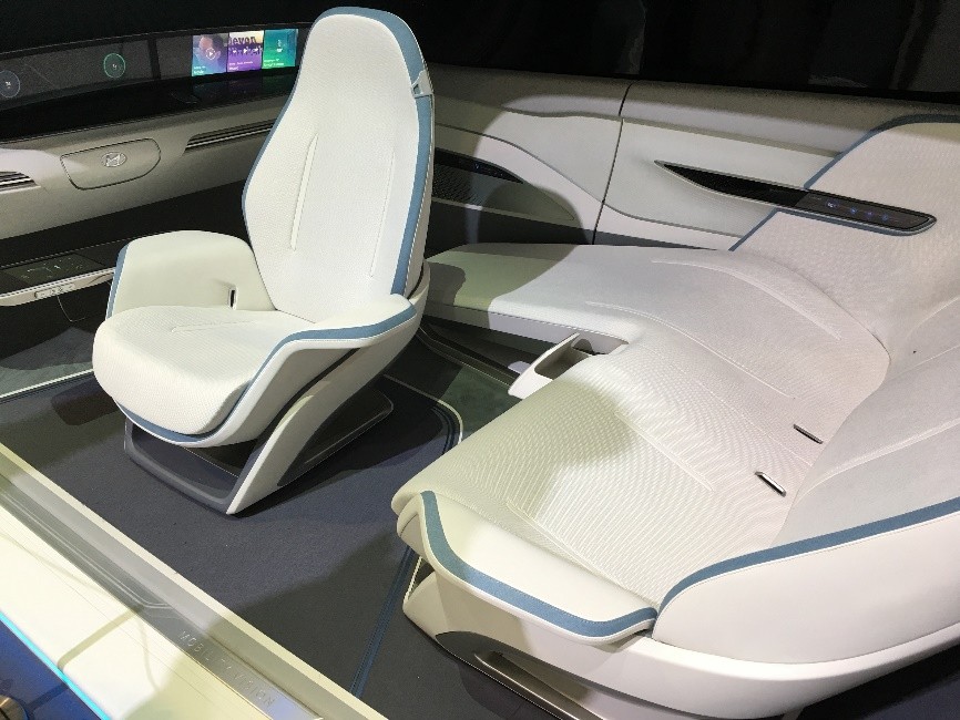 這次豐田汽車在展會的前一天就揭示了它的新概念車Concept-i。這是我看到的最喜歡的一款車,外形十分拉風,設計理念也吸引人:以人為本,和人建立溫暖友好的伙伴關系。Concept-i通過人工智能系統Yui和各種傳感器分析你的駕駛習慣、感知你的情緒、獲知行程時間與目的地等信息;而且可以感知駕駛者的視覺或觸覺狀況、監測路況和駕駛者疲勞度(如果駕駛員垂頭,可以有冷氣把你吹醒),并且支持隨時切換自動/手動駕駛模式。走進它,它會向你眨眼,和你打招呼,十足的暖男范兒。